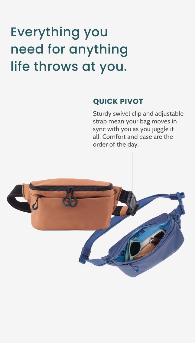 - Carry two ways: belt bag or sling