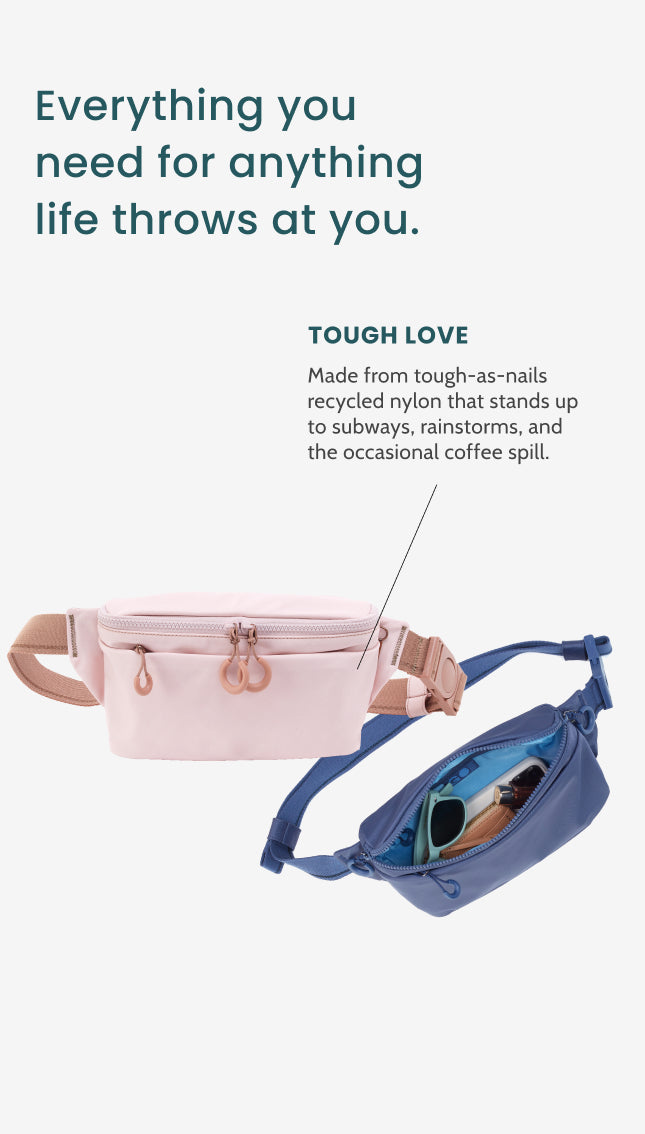 RQ: Real quick, sling on this belt bag and slay those days when your hands are full but your to-do list is fuller. Made of lightweight, durable nylon, it's your wallet, work pouch and travel pal-your all-in-one compact companion. Snacks? Keys? Puppy treats? Check, check, and oh-so-stylish, check.