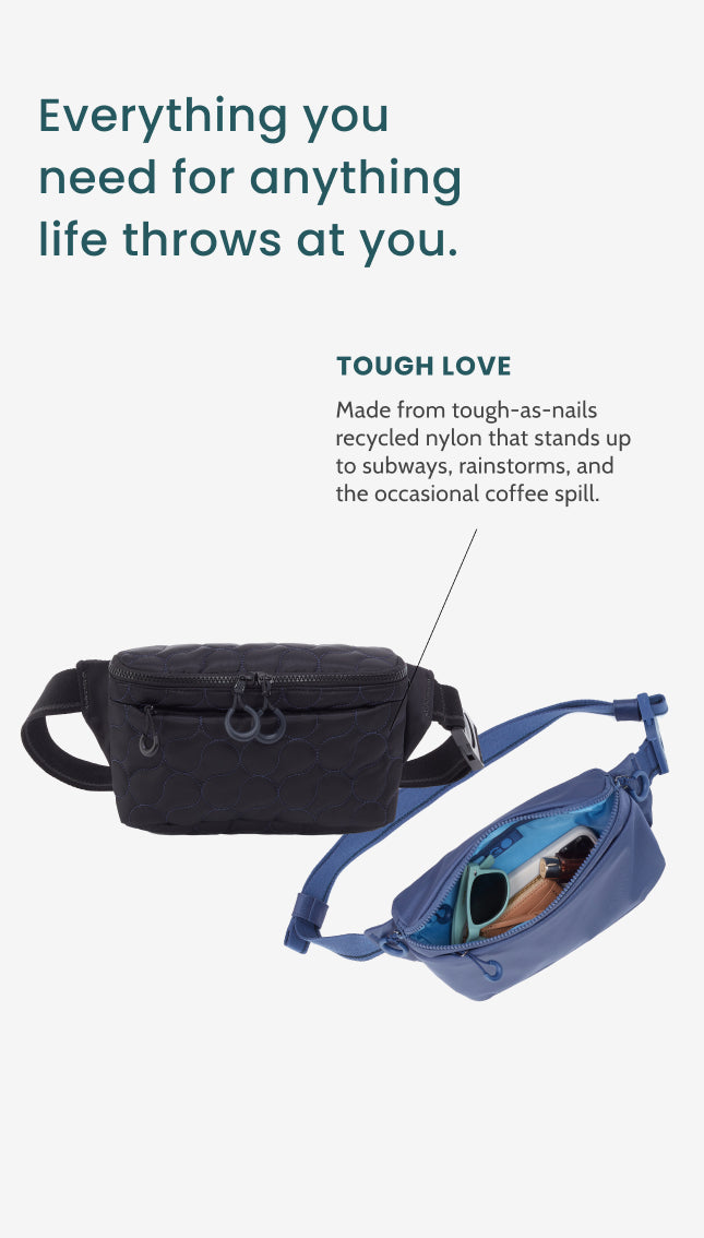 RQ: Real quick, sling on this belt bag and slay those days when your hands are full but your to-do list is fuller. Made of lightweight, durable nylon, it's your wallet, work pouch and travel pal-your all-in-one compact companion. Snacks? Keys? Puppy treats? Check, check, and oh-so-stylish, check.