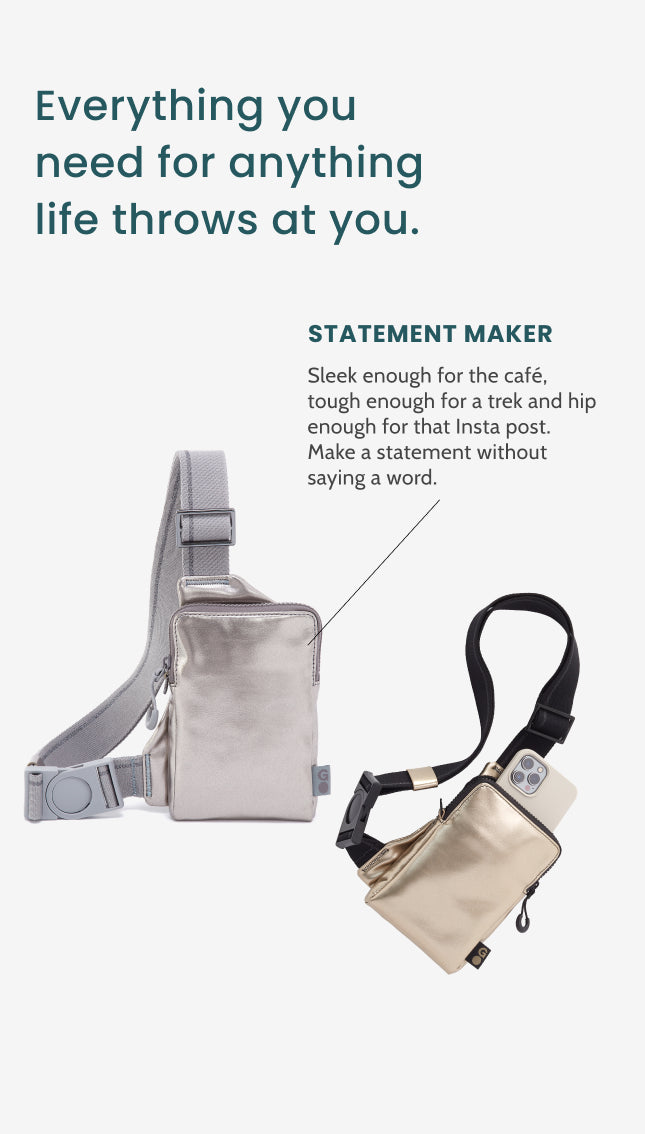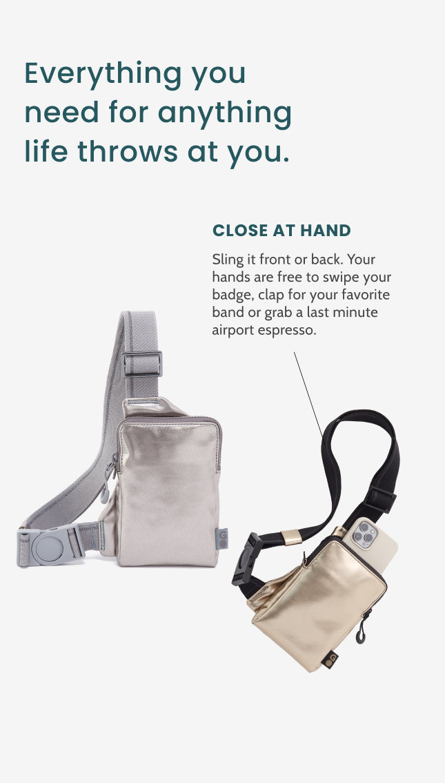 JSYK: Just so you know, this tiny titan for your tech is your hands-free life-line to secure your cards, cash, and phone. In easy-care material, it’s perfect for festival frolicking, grocery grabbing, and toddler chasing, because life doesn’t have a pause button and neither do you.