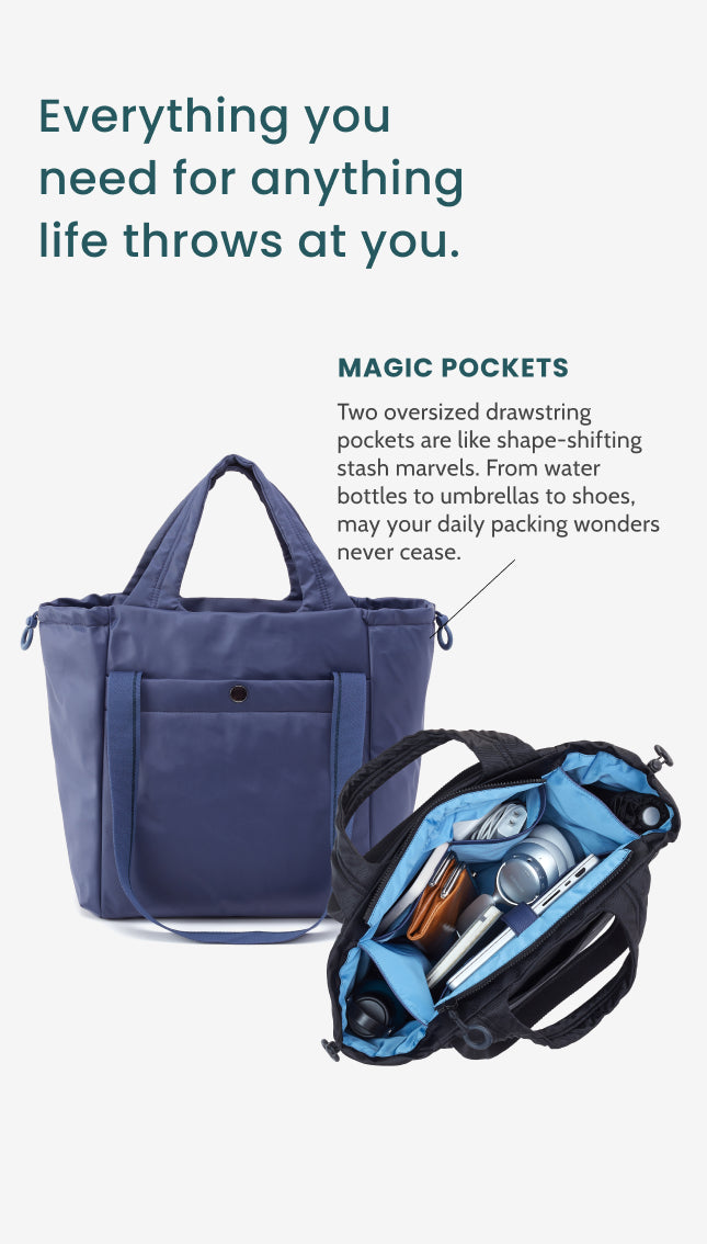 - 2 roomy drawstring pockets for water bottles, umbrellas